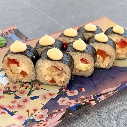 нори, рис, творожный сыр, салат айсберг, помидоры, курица халяль, фирменный соус цезарь